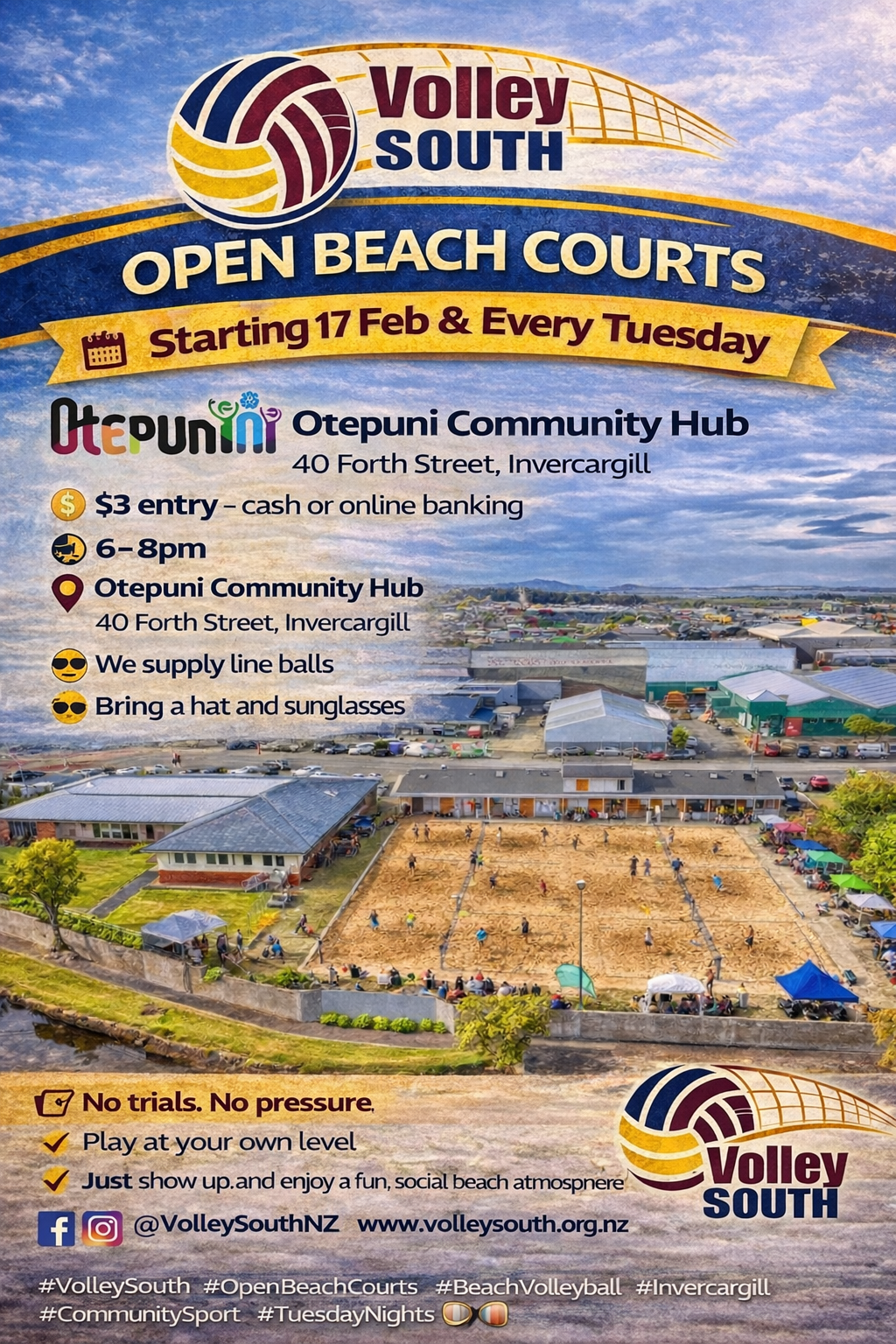 #VolleySouth #OpenBeachCourts #BeachVolleyball #Invercargill #CommunitySport #TuesdayNights ๐๐