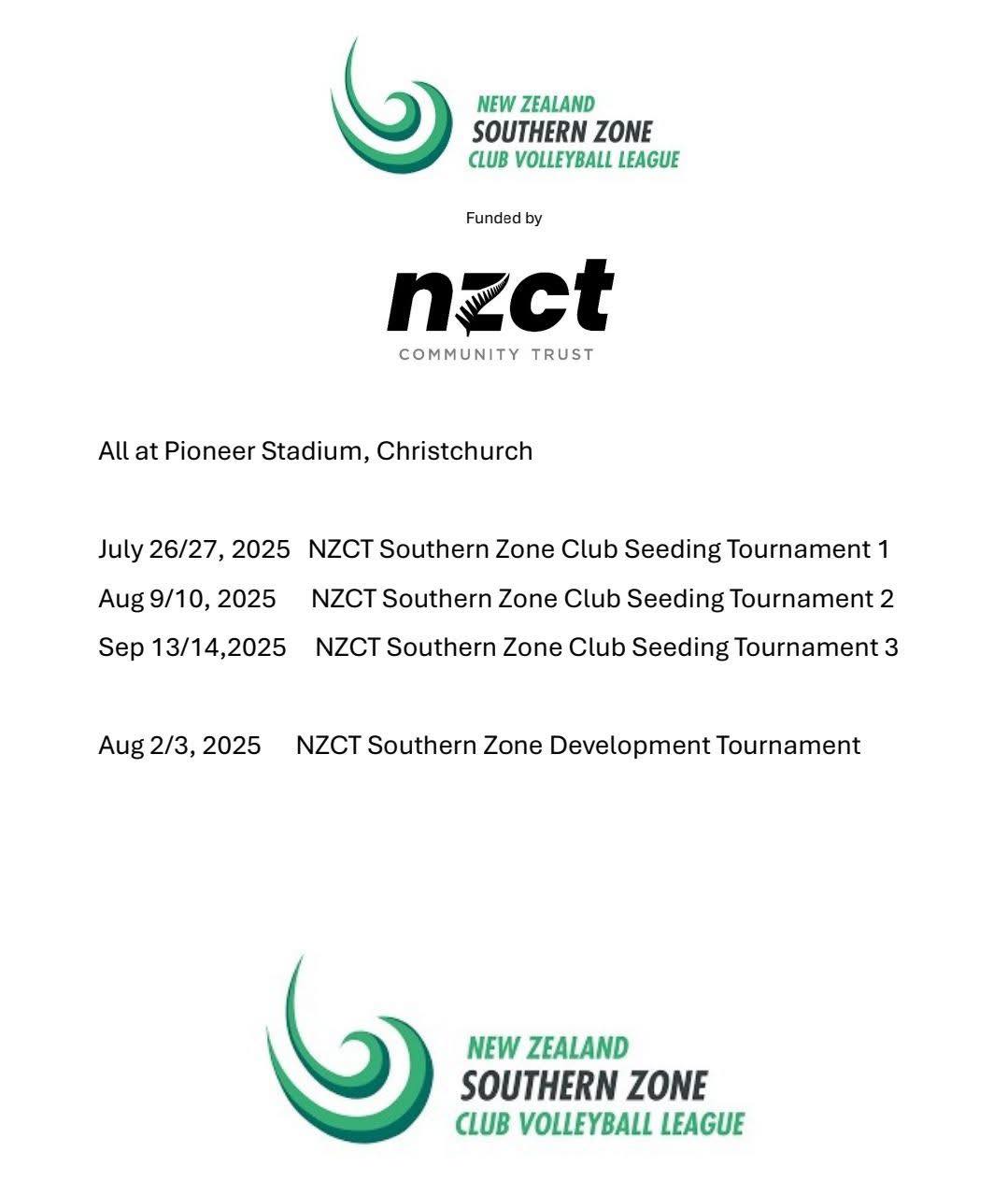 Volleyball New Zealand (VNZ) is still working through the tournament format, including divisions and venues - expected ETA this week